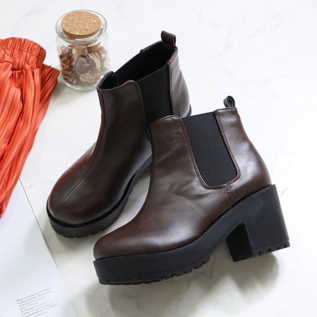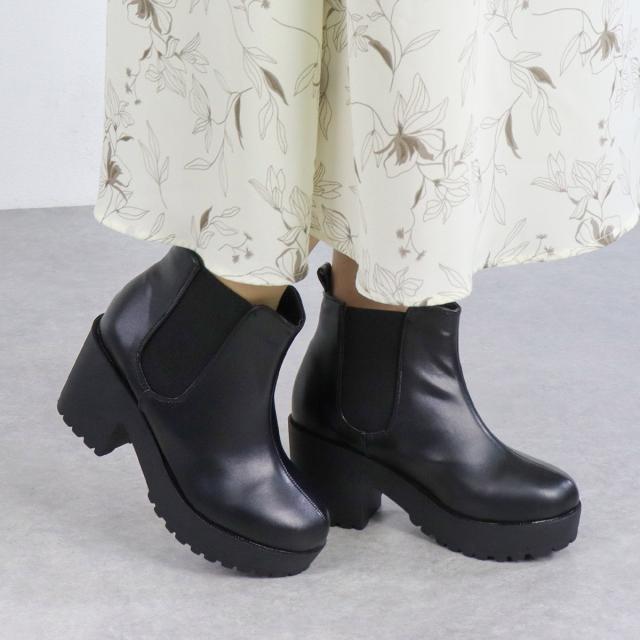 ブーツ レディース 厚底 8cmヒール サイドゴア 9041 ショートブーツ 22.5-24.5cm 歩きやすい 黒 軽量 ブラック 靴 サイドゴアブーツ かわいい シンプル 痛くない 履きやすい ブラウン 茶 脚長 身長アップ 美脚 防寒 あったかい