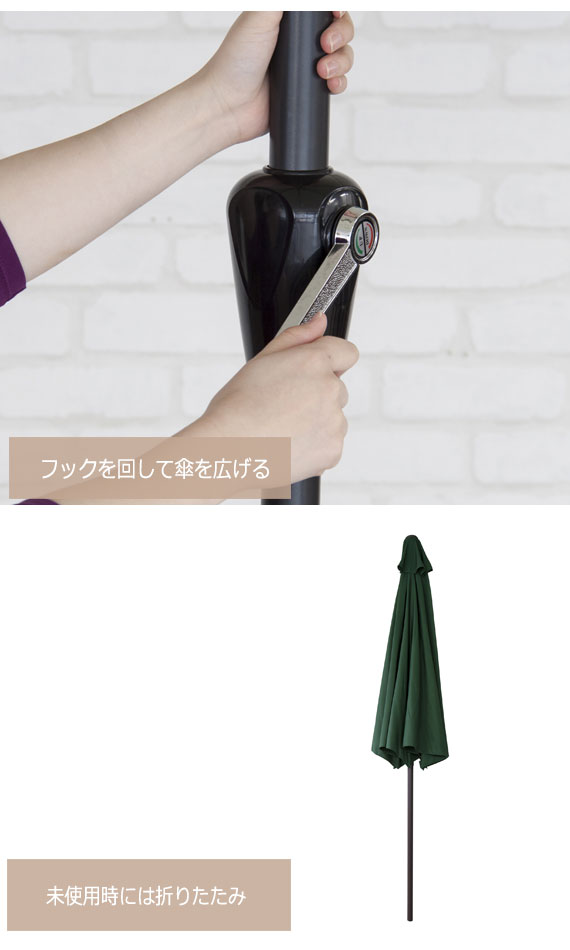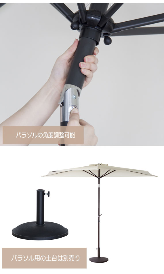 | 説明 | アウトドアやガーデンファニチャーにおすすめ。 日差しを遮るガーデンパラソル。角度の微調整が可能です。 |