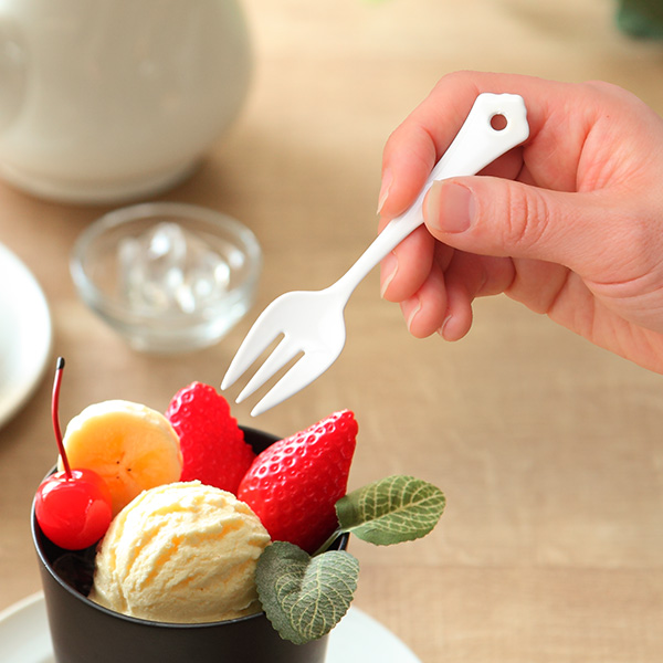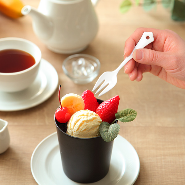 スイーツやカットフルーツなどに幅広く使える、小さいお子様にもおすすめなフォークです。