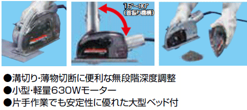 | □溝切り・薄物切断に便利な無段階震度調整付 |
