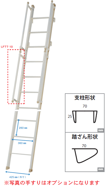 | ■ALINCO 室内はしご(ロフトエース) LFT-Eシリーズ■ LFT-26E 全長:2.59m | |||||||||||||||||||||