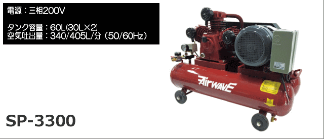 エアーコンプレッサー 60L 3シリンダー型 SP-3300 三相200V [個人様宅配送不可]