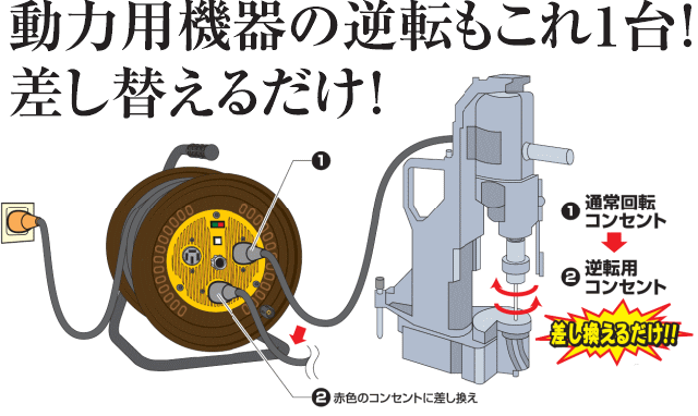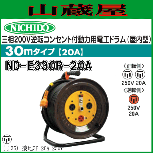 | 三相200V逆転コンセント付動力用電工ドラム(屋内型) | ND-E330R-20A |