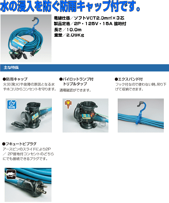 | 電 線 | 10.0m ソフトVCT2.0×3 |