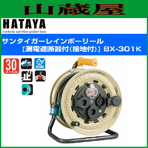 ハタヤリミテッド [HATAYA] サンタイガーレインボーリール【屋外用】漏電遮断器付[接地付]BX-301K 単相100V 30m