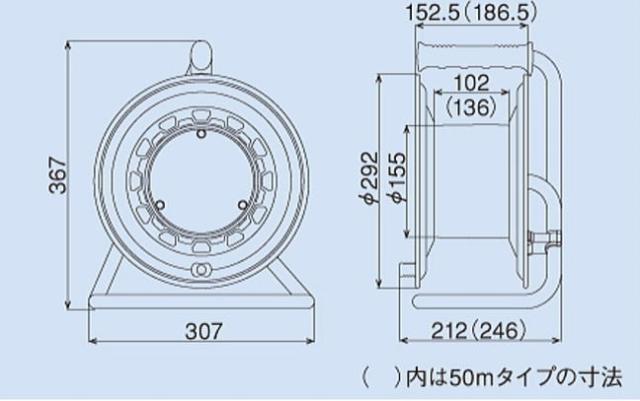 ハタヤの屋外用電工ドラム 単相100V 30m