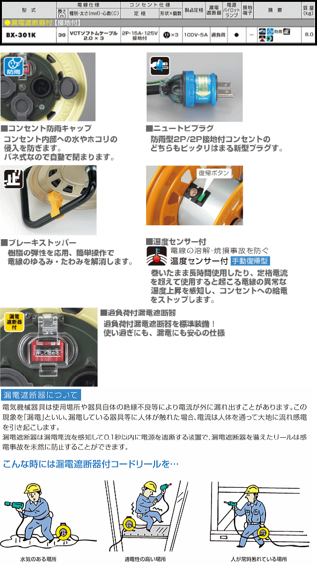 | サンタイガーレインボーリール【屋外用】【漏電遮断器付】 | BX-301K |