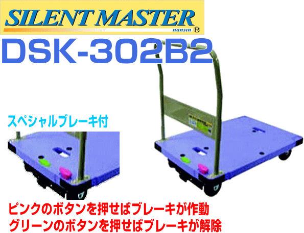 ナンシン 台車 樹脂微音運搬車 サイレントマスター DSK-302B2(ハンドル固定/スペシャルブレーキ付) 最大荷重:300Kg 青色 サイズ 900mm×600mm ハンドル高 861mm [送料無料]