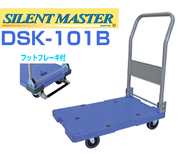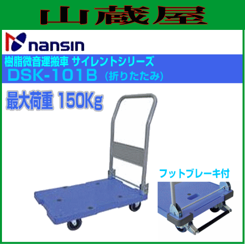 台車 ナンシン 樹脂微音運搬車 サイレントマスター DSK-101B(折りたたみ/フットブレーキ付) 最大荷重:150Kg 青色 サイズ 715mm×460mm ハンドル高 860mm [送料無料]