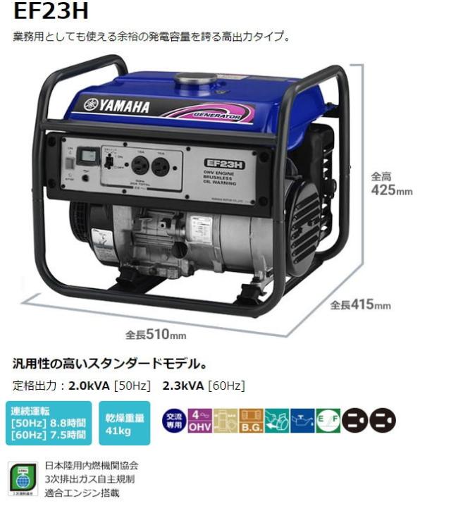 ヤマハ 発電機 EF23H 60Hz用 業務用としても使える余裕の発電容量を誇る高出力タイプ 交流専用