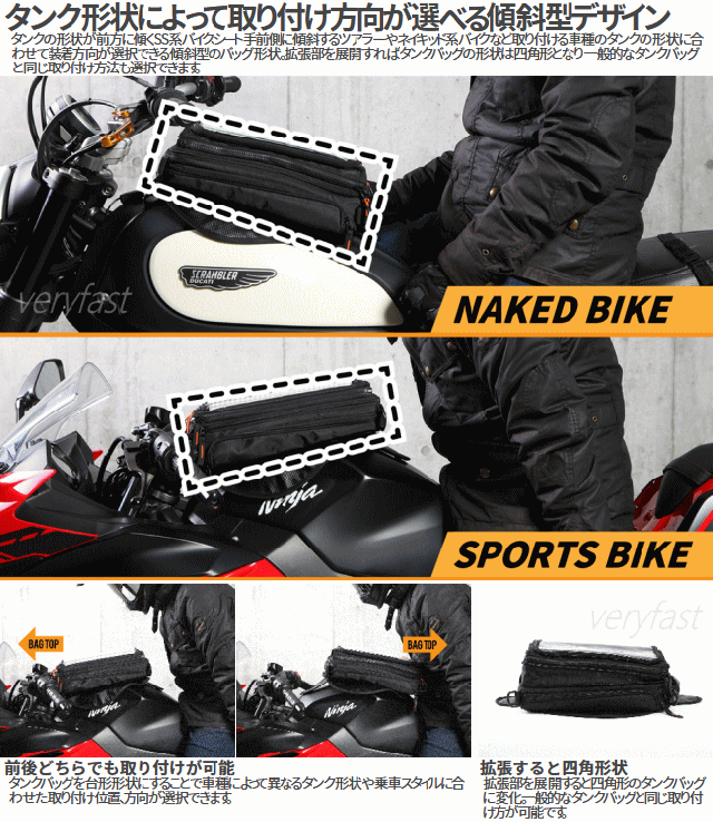 DOPPELGANGER バイク用 バッグ タンクバッグ ライダーズタンクバッグ 可変システム搭載 ライダー バイク乗り ライダーズタンクバッグ DBT525-BK ブラック