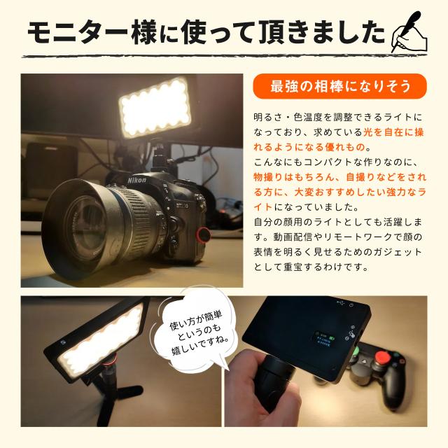 ⇒ご購入の前にご確認下さい被写体を明るく照らして写真やビデオを綺麗に撮れる。明るさと色温度を調整できるカメラ用LEDライト。【WEB限定商品】