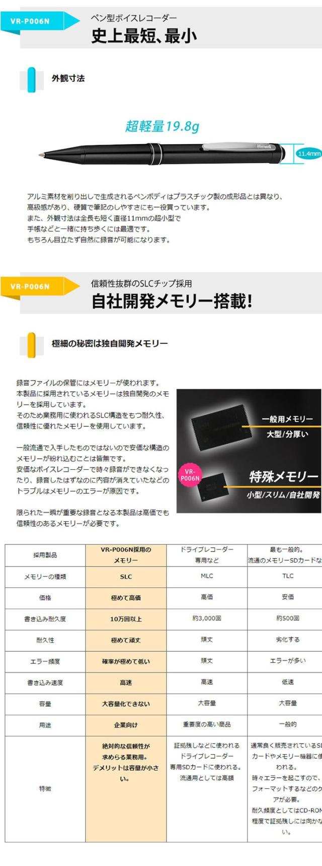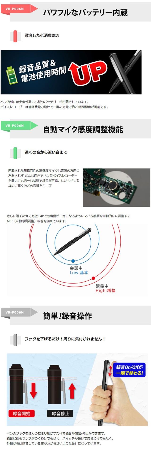 ボイスレコーダー ボールペン型録音 ICレコーダー VR-P006N マイクが目立たない 証拠録り ベセトジャパン