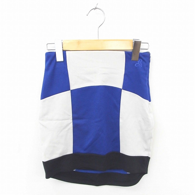 【中古】未使用品 ロエン Roen タグ付き スカート タイト ミニ ブロックチェック S 紺 ネイビー /TT14 レディース