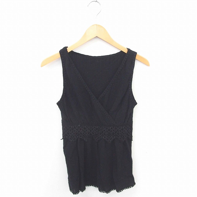 【中古】グレースコンチネンタル カットソー レース 総柄 カシュクール ウール ノースリーブ 36 黒 ブラック /TT26