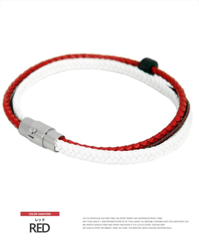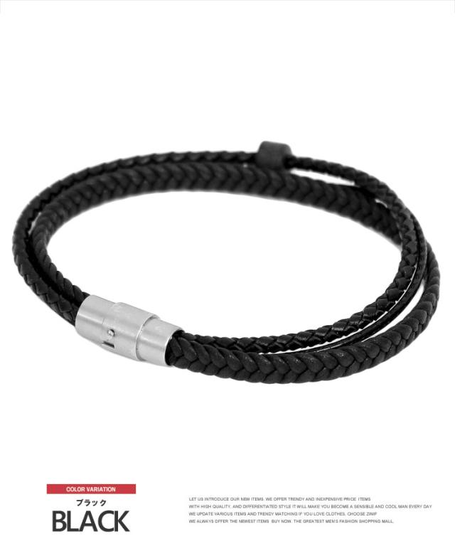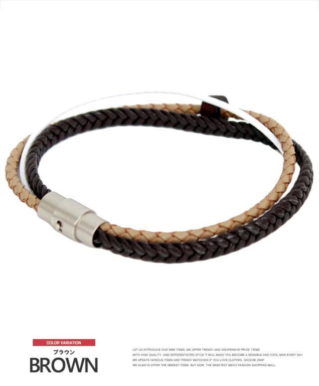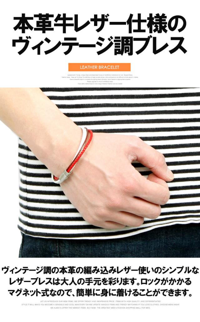 【メール便で送料無料】 ブレスレット メンズ 牛革 レザー 編み込み 3連 マグネット式 バングル レディース ユニセックス 本革 レザーブレスレット 白 黒 赤 腕輪 プレゼント 贈り物 シンプル ペア 小物 人気 アンクレット チャーム アクセサリー ギフト 三連