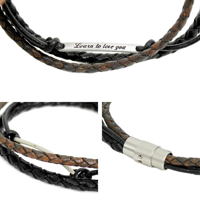 【メール便で送料無料】 ブレスレット メンズ 牛革 レザー 編み込み 英字 プレート 3連 マグネット式 バングル レディース ユニセックス 本革 レザーブレスレット 白 黒 赤 腕輪 プレゼント 贈り物 シンプル ペア 小物 アンクレット チャーム アクセサリー ギフト 三連
