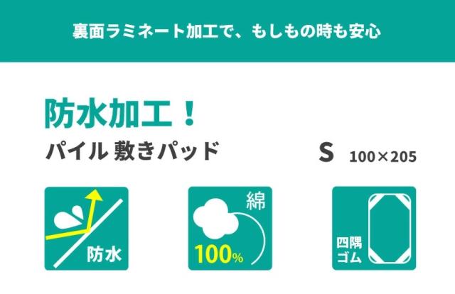 敷きパッド シングル 防水 シンカーパイル 100×205cm 敷パット 夏 洗える 防水加工 介護 子育て ペット 綿パイル