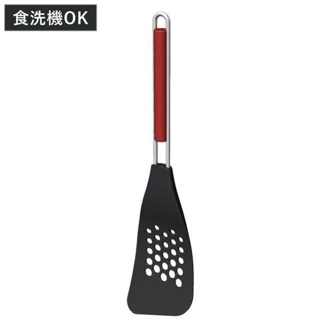 ●ヘッド部分はガラス繊維含有のナイロンなので耐熱にも優れ、フライパンなどが傷つきにくいです。