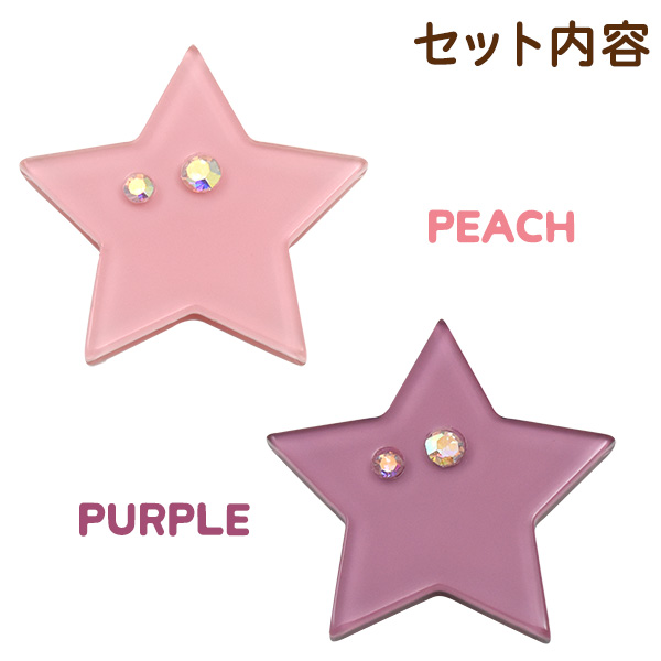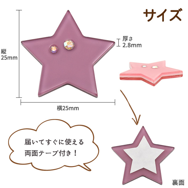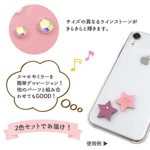 デコパーツ スター 2個セット 両面テープ付き デコ素材 星 紫 桃 DIY用 オリジナル スマホケース デコレーションパーツ 手作り 自作 素材