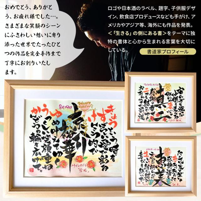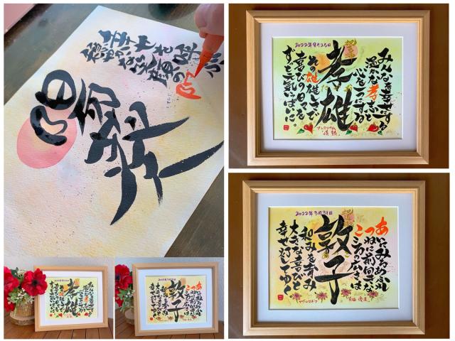 それぞれのお祝いや感謝の気持ちを世界でひとつの書の作品にいたします。