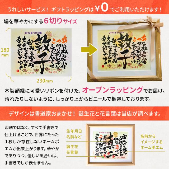 ポエム お名前 誕生日 詩 名前 家族 ペア 結婚祝い ネームポエム 名前入り ネームイン 結婚式 両親 プレゼント 結婚記念日 贈答品 お祝い 還暦 古希 金婚式 銀婚式 開店祝い 父 母 名入れ 祖父 祖母:生まれた日の花言葉が入る 誕生花ネームポエム(6切りサイズ)