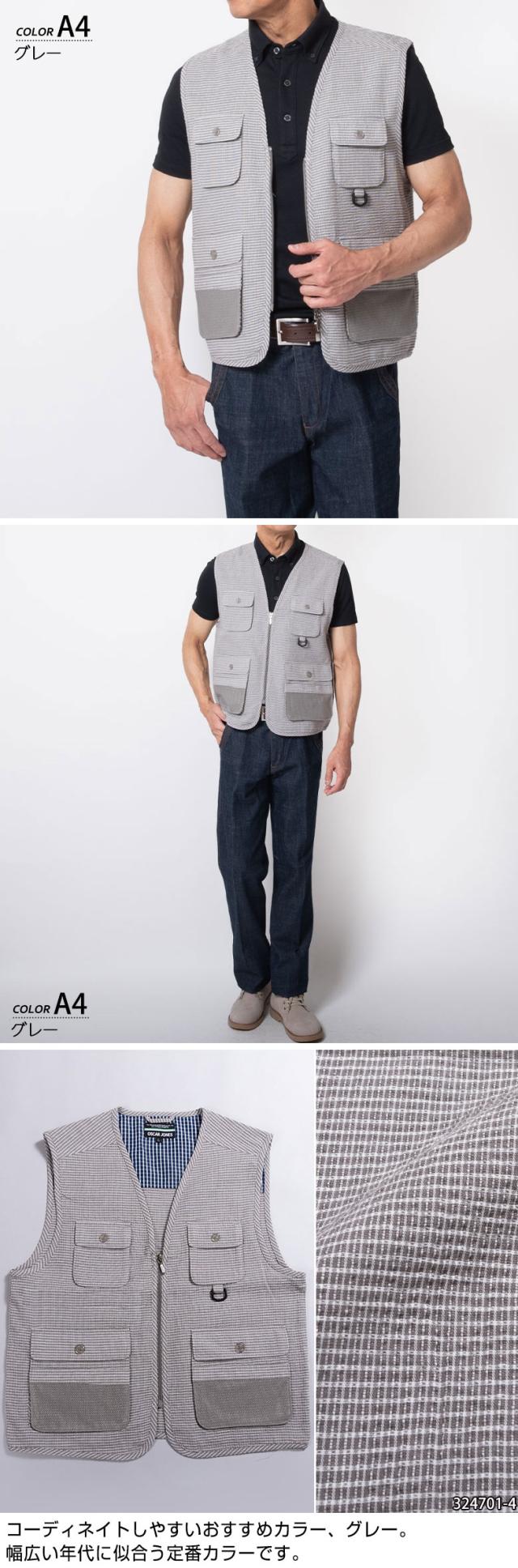 カジュアルベスト メンズ サマーベスト 綿 コットン 多機能ベスト 春夏 散歩 お出かけ 手ぶらベスト アウトドア プレゼント父の日 贈り物 324701 320701 vest24