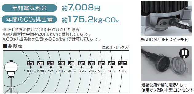 | 防災・イベント照明、建築・土木・倉庫などの現場照明に最適です。 | ||