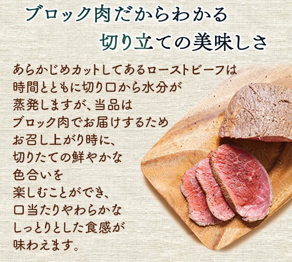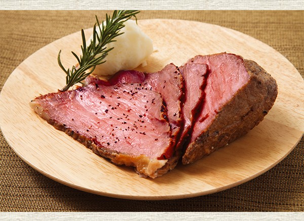 高い品質を誇るハム加工精肉メーカーの「福留ハム」謹製ローストビーフは、やわらかい赤身肉が特徴の「国産牛もも肉」を使用。