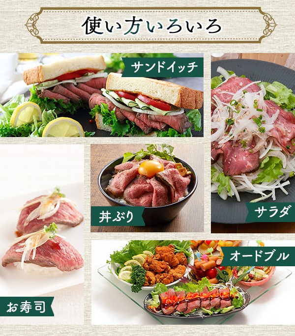 【ローストビーフ】牛もも肉(国産)、食塩、香辛料、砂糖、植物油脂/調味料(アミノ酸)、酸化防止剤(ビタミンC)、香辛料抽出物、(一部に牛肉を含む)