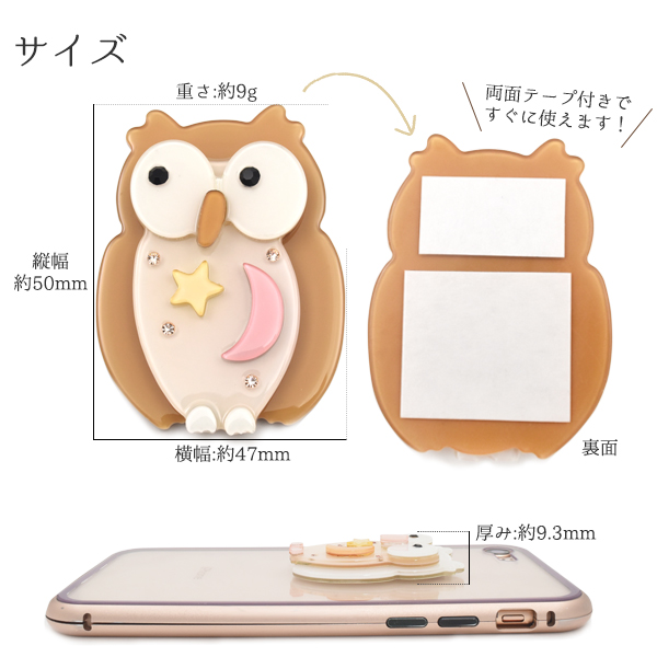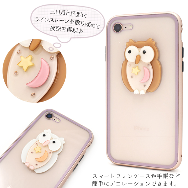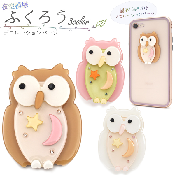 デコパーツ 夜空模様 ふくろう 両面テープ付き DIY用 デコ素材 オリジナル スマホケース 白 茶 桃 デコレーションパーツ 手作り 自作 素材