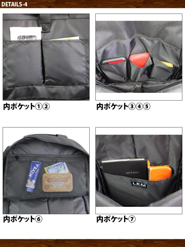 メインスペースは小物類を整理しながら収納できる様にたくさんのポケットが備え付けられています。