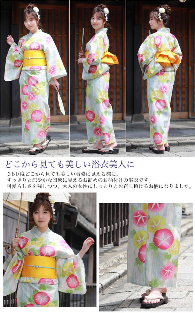 ※浴衣の柄の配置はモデル着用と