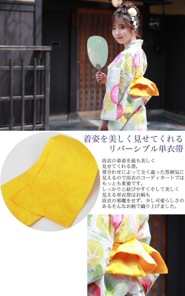 帯は爽やかな可愛らしさのある黄色で