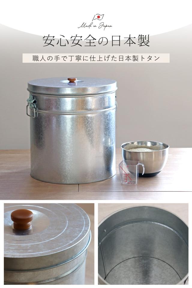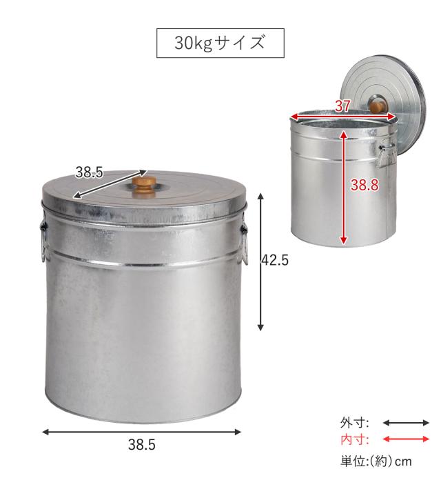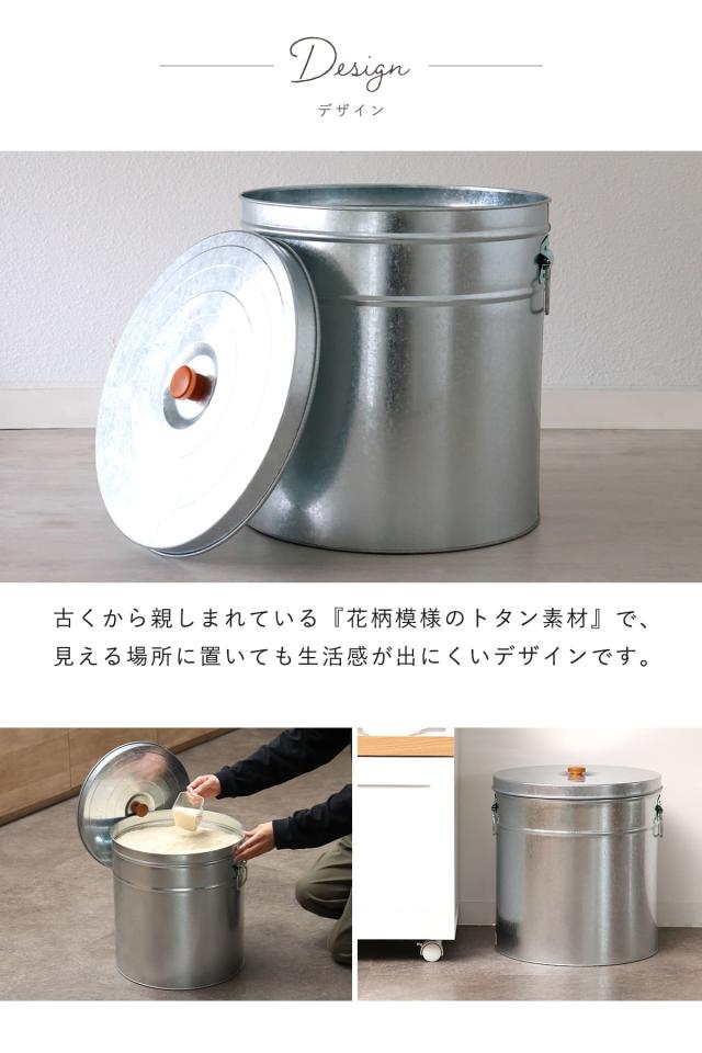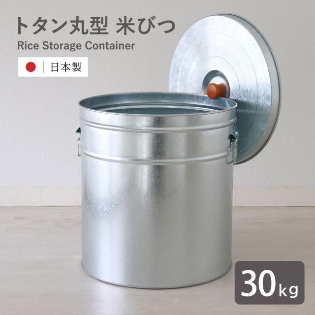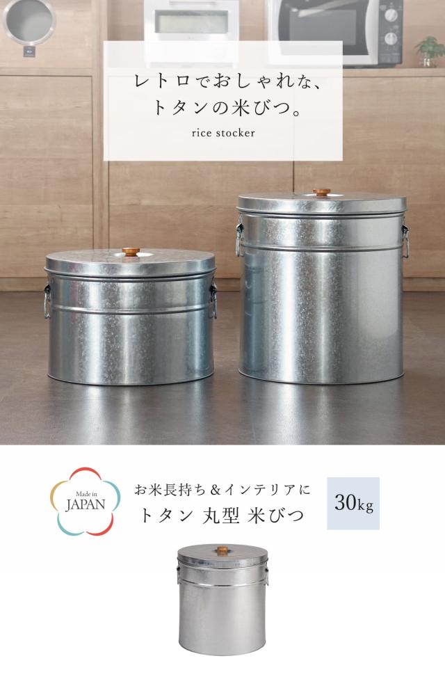 米びつ 30kg 丸型 トタン 袋のまま ( 米櫃 ブリキ 缶 ライスボックス ライスストッカー ペットフードストッカー 30キロ 日本製 米ストッカー お米保存 大容量 袋ごと そのまま ペットフード ドッグフード おしゃれ レトロ )