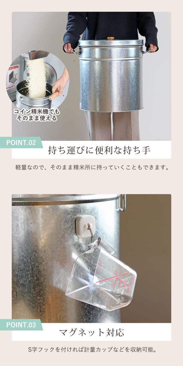 おしゃれなトタン丸型米びつ、お米長持ち&インテリアに♪