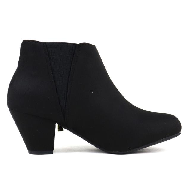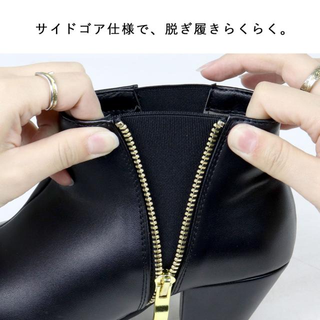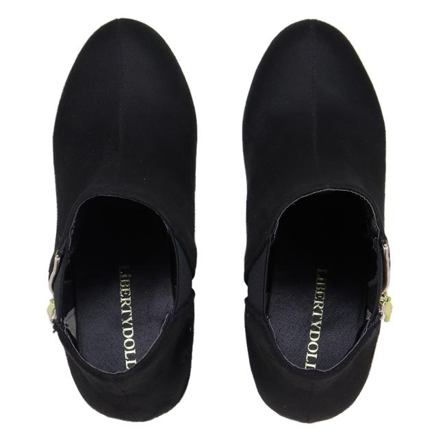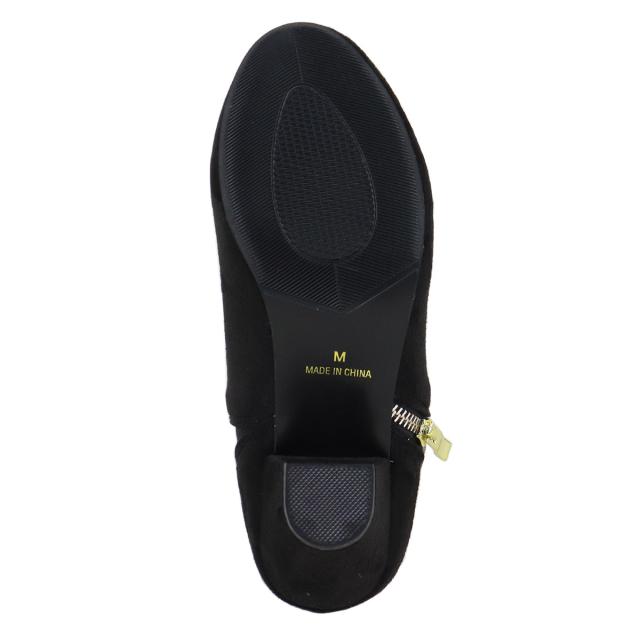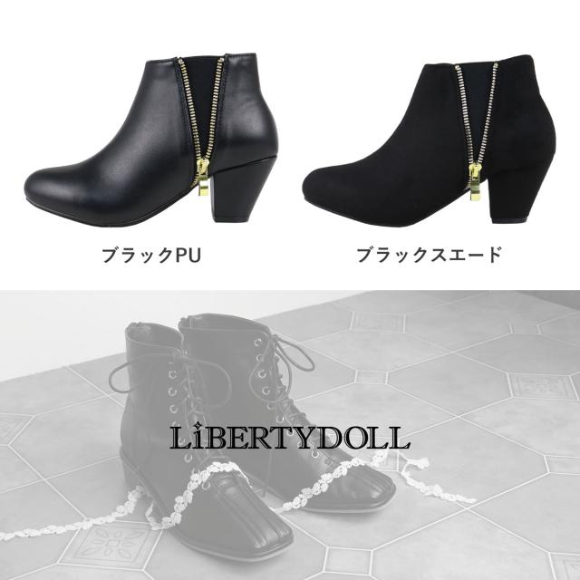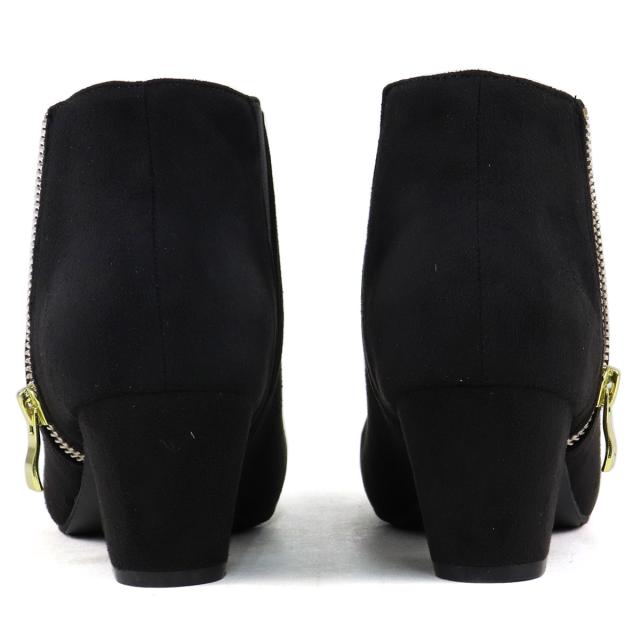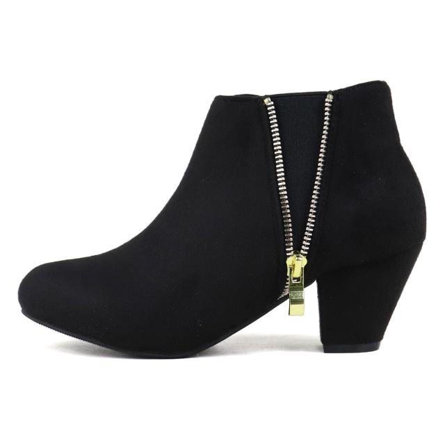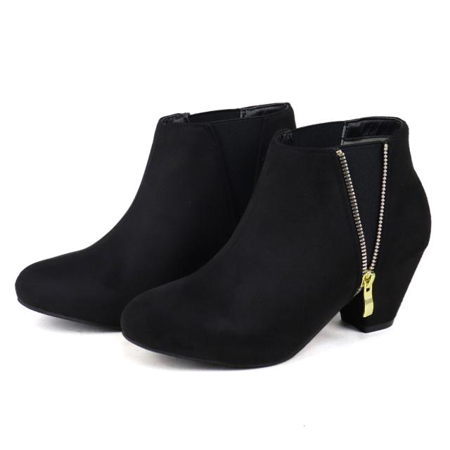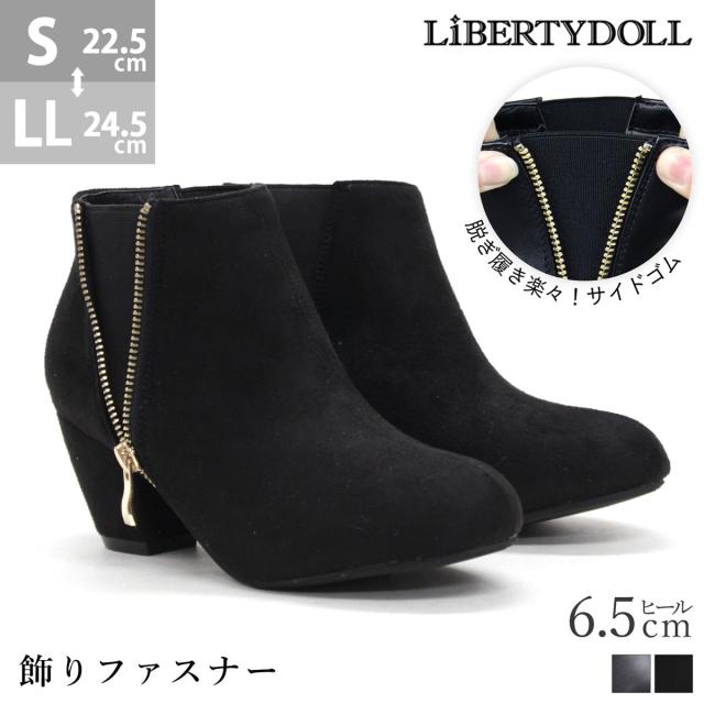 ブーツ レディース ショートブーツ サイドゴア 履きやすい 太ヒール 6.5cmヒール 飾りファスナー 合皮 黒 スエード ブラック No.9020 22.5cm-24.5cm リバティードール