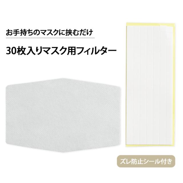 マスクフィルター 不織布 使い捨て 30枚入り ズレ防止シール付き マスク専用 取り替えシート 両面シール付き 1ヶ月分 大きめ テープ付き 花粉症対策 グッズ 春 夏 秋 冬 春夏 秋冬