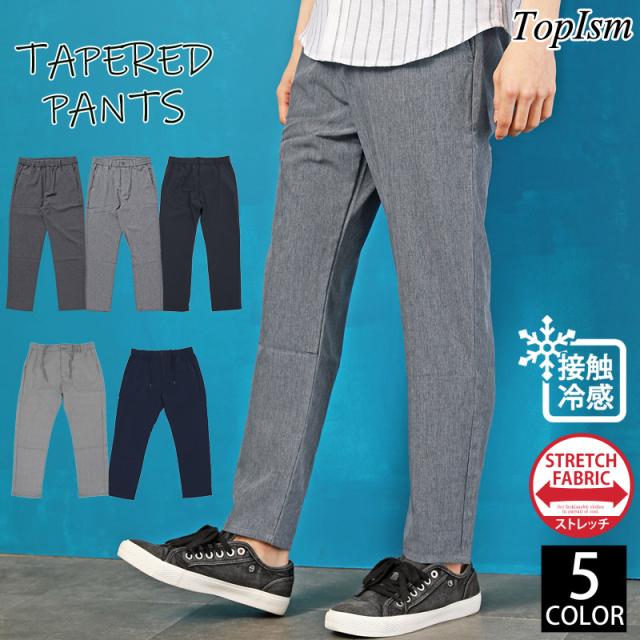 新作 接触冷感 パンツ メンズ テーパードパンツ ストレッチ ストレート スラックス ノータック 無地 ウエストゴム 送料無料 春 夏 グレー チャコール ブラック ネイビー グレンチェック M L LL カジュアル ストリート キレイメ 大学生 ビジネス ゆうパケ