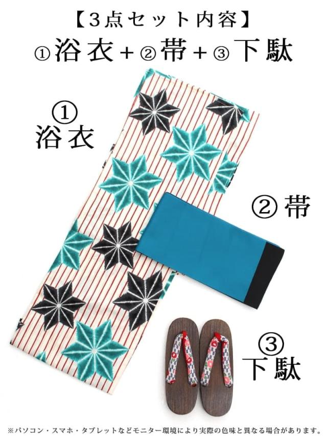 ☆浴衣・半幅帯・下駄のお得な3点セットでコーデに悩まず急なお誘いでもすぐに着れるレディース浴衣セット♪