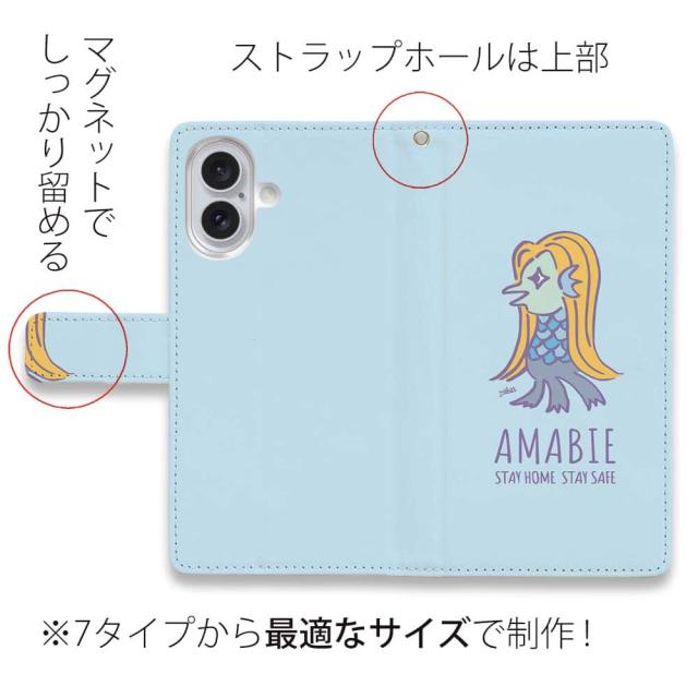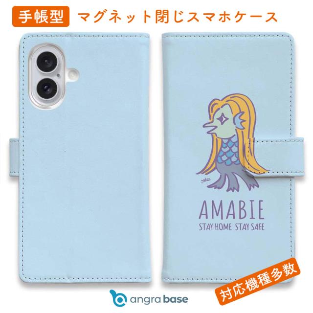 スマホケース 手帳型 カード収納 マグネット iPhone17 Pro Max iPhone Air iPhone16e iPhone16 Pro Max 16 Plus 15 Pro Max Xperia 10 VII Galaxy AQUOS ARROWS Pixel10 XL 妖怪 尼彦 シンプル おしゃれ グッズ アマビエ(wakat)