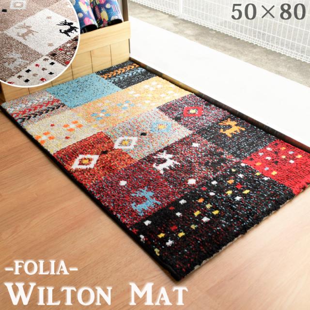 玄関マット フォリア 50×80cm トルコ製 ウィルトン織 室内 インテリア インテリアマット ラグマット マルチカラー 丈夫 ポリプロピレン