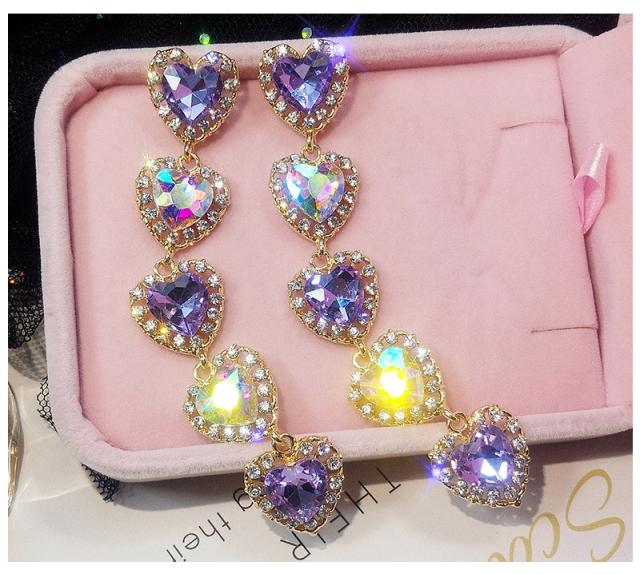 ピアス レディース 韓流 ロングピアス ラインストーン CZダイヤモンド アレルギー対応 揺れる ハート 5連 母の日