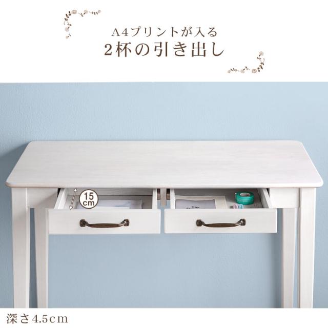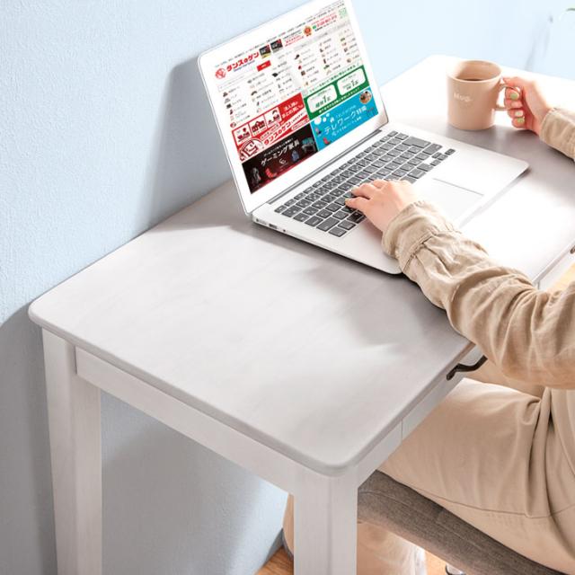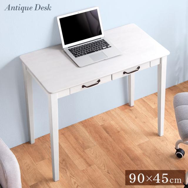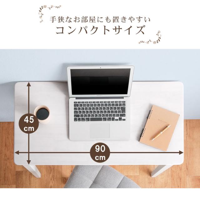 引き出し付き パソコンデスク 幅90cm 奥行45cm 高さ71cm ホワイト ラバーウッド 天然木 PCデスク オフィスデスク ワークデスク シンプル 在宅勤務 テレワーク【商品番号:2540003500】