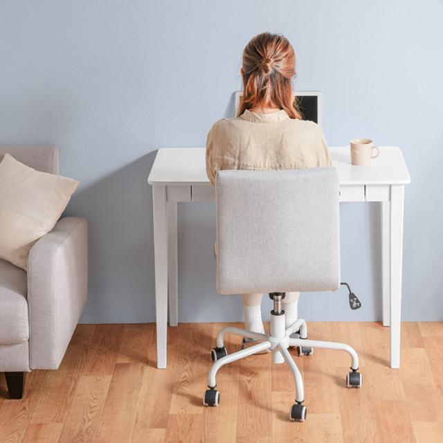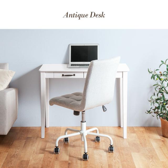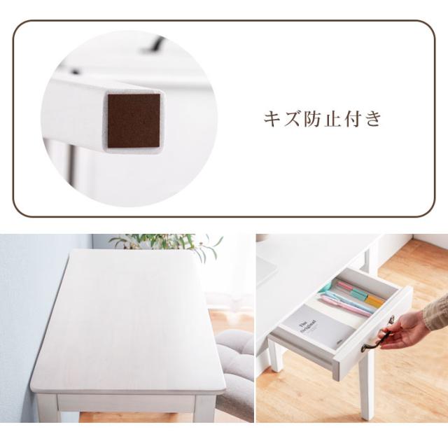 引き出し付き パソコンデスク 幅 90 ホワイト ラバーウッド 天然木 木製 木目 PCデスク オフィスデスク ワークデスク シンプルデスク オフィス テレワーク 在宅 机 つくえ 作業台 簡易デスク 作業机