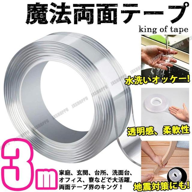 両面テープ クリア 魔法テープ 【3m】 幅3cm 厚さ2mm 強力 洗って繰り返し使える 耐熱 滑り止め 多機能 家庭 オフィス 学校 送料無料