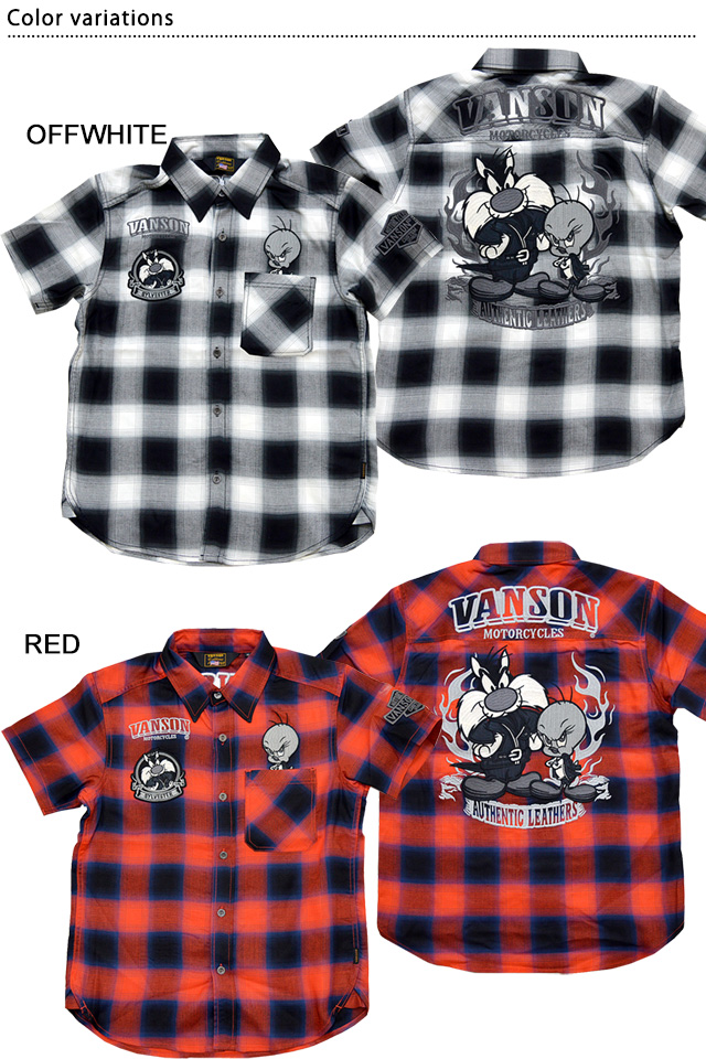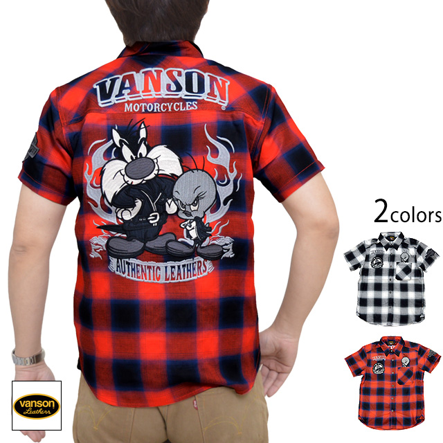 vanson×LOONEY TUNESコラボ チェック半袖シャツ vanson LTV-2010 バンソン ヴァンソン 刺繍 バイカー