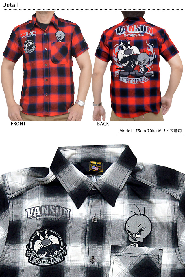 | vanson×LOONEY TUNESコラボ チェック半袖シャツ◆vanson VSN-M00971 | |||||||||||||||||||||||||