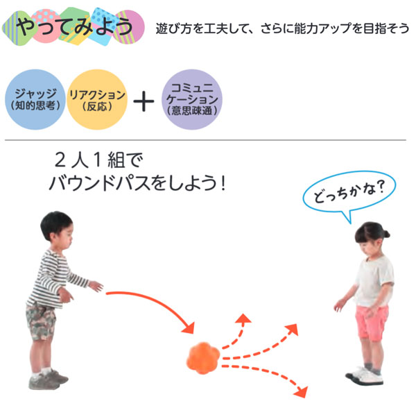 予測不能なボールの動きで敏捷性を鍛えましょう。やわらかく当たっても痛くないポリウレタン製。おうちや公園で遊べます。