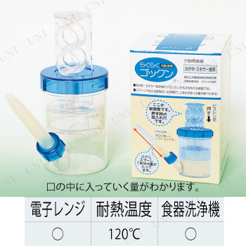 | 商品説明 | 食事介助で困っている方用へ。量を食べさせられない、口を開けない、スプーンに噛み付く、水分がむせて飲ませられない等の食事介助をお助け出来る食事用吸い飲みです。口の中に入っていく量がわかりやすい設計。おかゆやミキサー食にご使用いただけます |